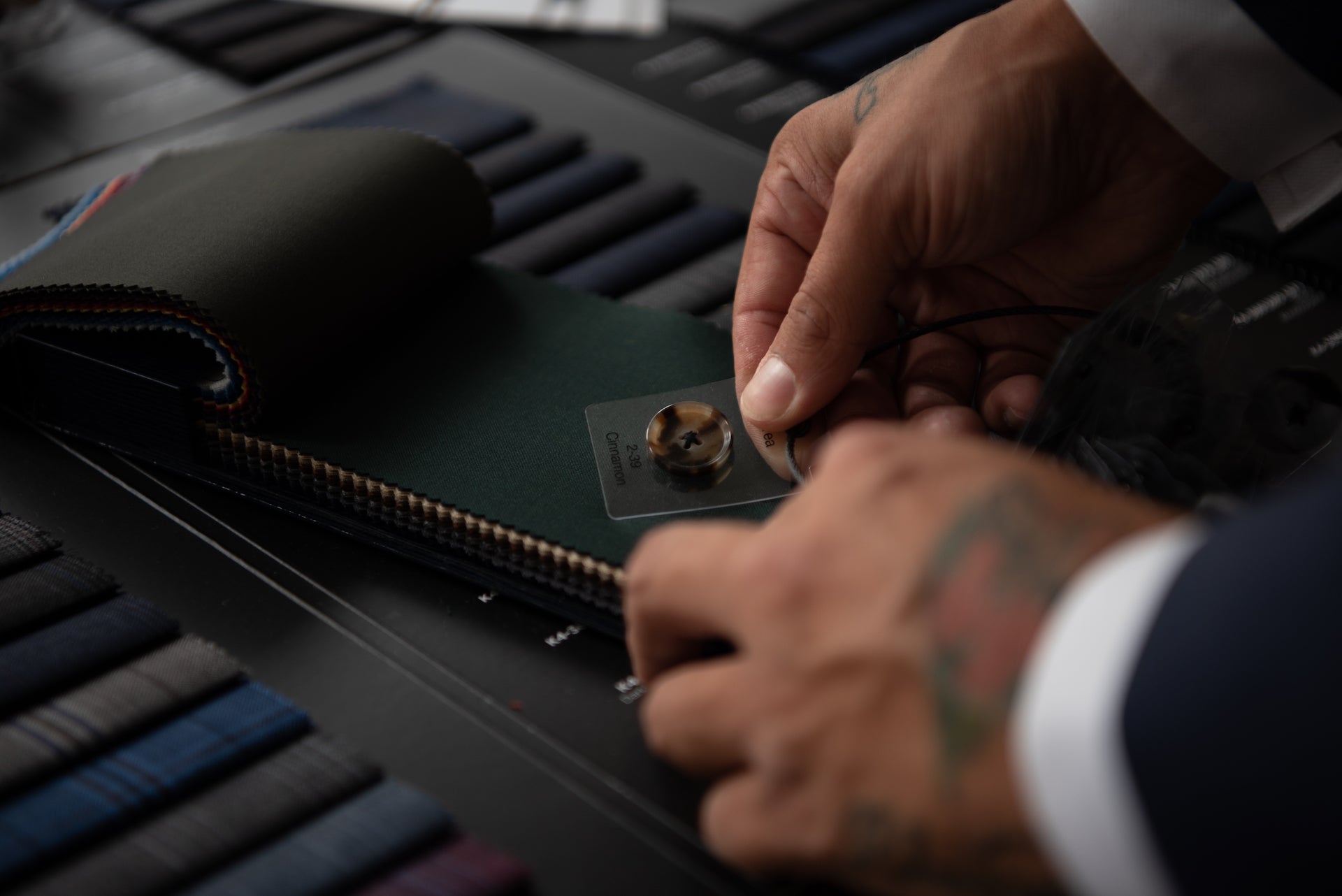 The first consultation is straightforward and can be split into 3 parts - selecting the cloth, choosing details and taking measurements. It is a simple process but does involve many key decisions. During this process the client's tastes, interests and lifestyle are discussed so that a profile can be created with all their requirements and the cut and fit of the garment built around his or her needs.